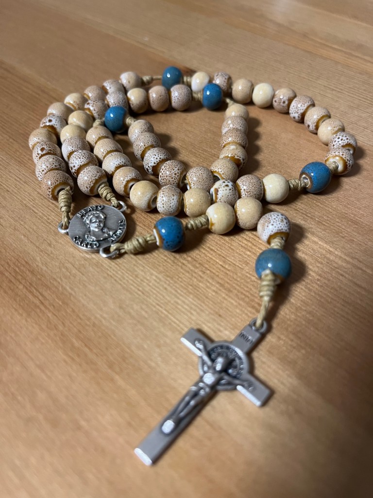 con grani in ceramica e in legno di ulivo della Terra Santa